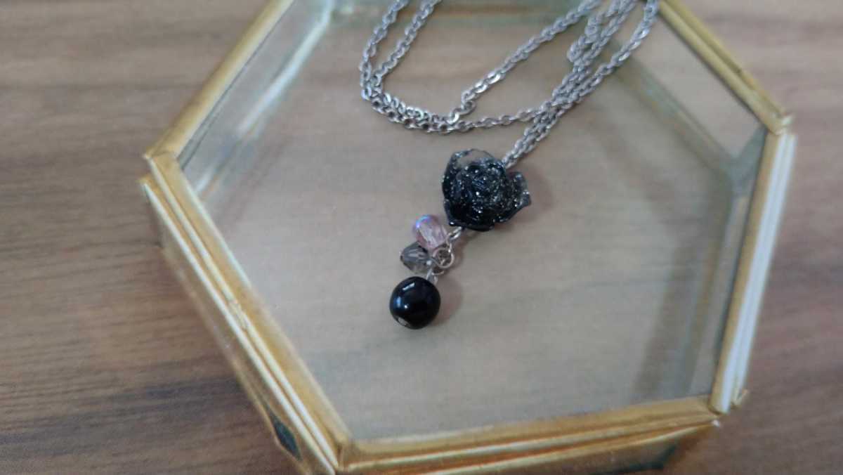 - □未使用□ラメ入り黒薔薇モチーフ×ビーズ・ネックレス□