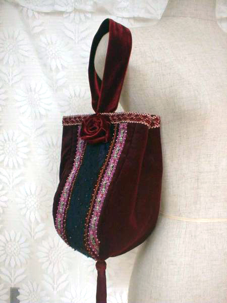 > ハンドメイド パーティバッグ・ヴィクトリアン☆薔薇バラroseばら ローズ ベルベット 別珍 アンティーク風 クラシカル