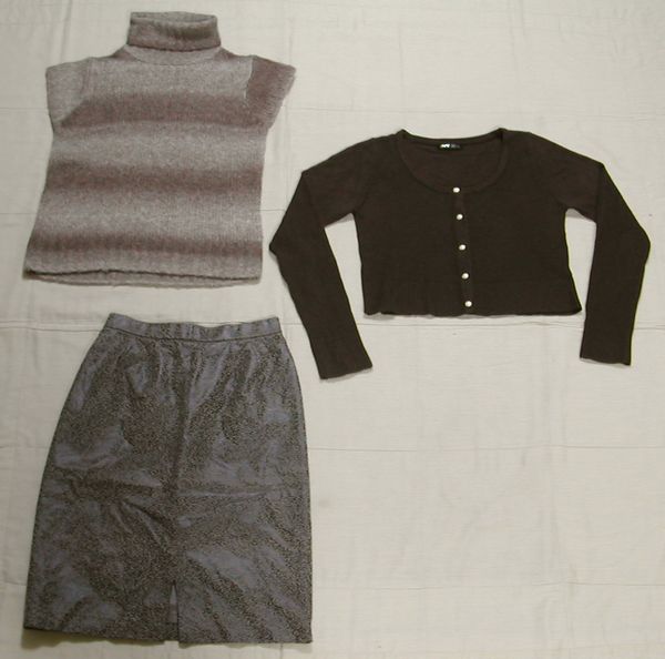 - ■USED:茶系3点 短袖セーター&カーディガン&スカート M DmJ74