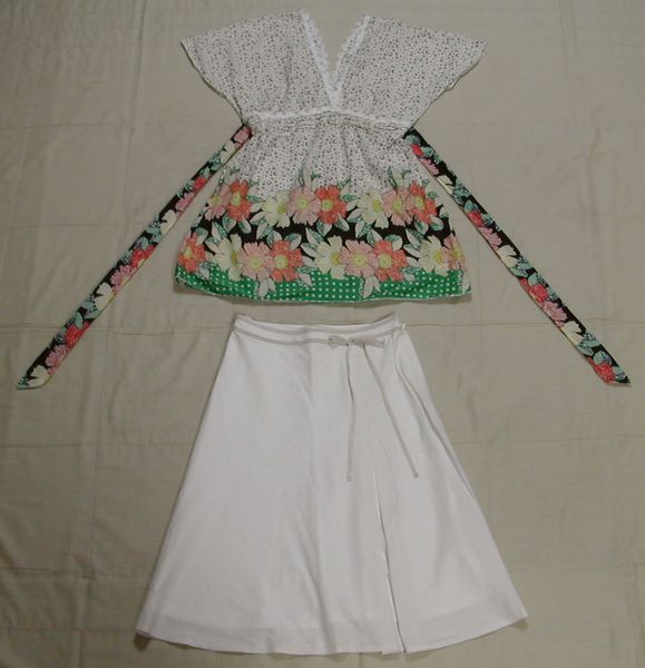 - ■USED:薄手花柄チュニック&小さなドット柄スカート M位 DmK81