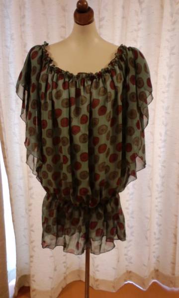 - ★★★秋服★ローズ★ドット★シフォンチュニック グリーン★★★