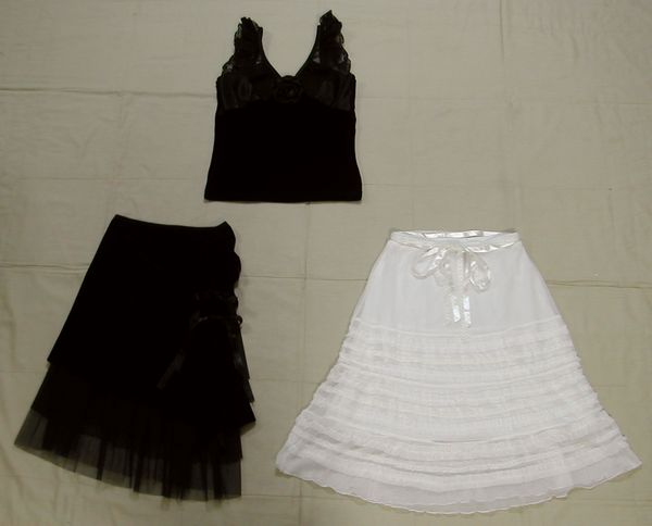 - ■美品:モノクロ上下3点セット 黒上下と白スカート M位 DmO94