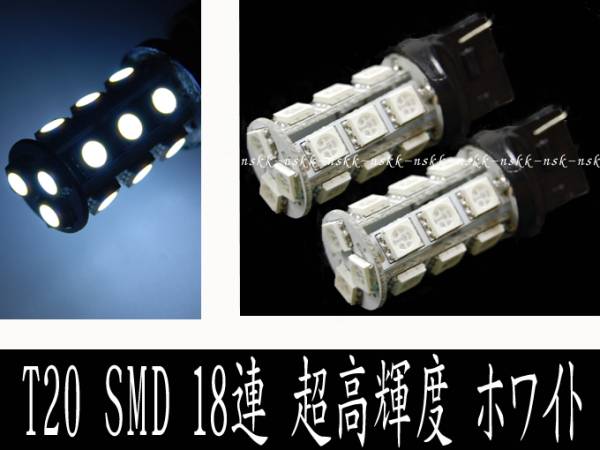 - 高輝度T20 SMD 18連3チップ ホワイト2個セット白