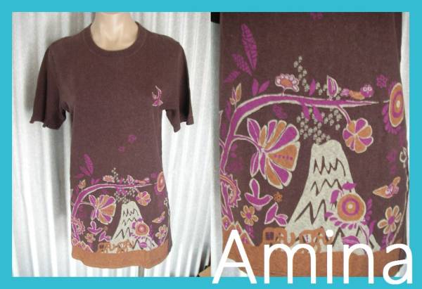 - amina アミナ 茶色 アジアン Tシャツ サイズM