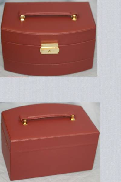 - 女性用ボルドー色22x12x16,5㎝3段式宝石ケース【本物新品】 ○J6-20