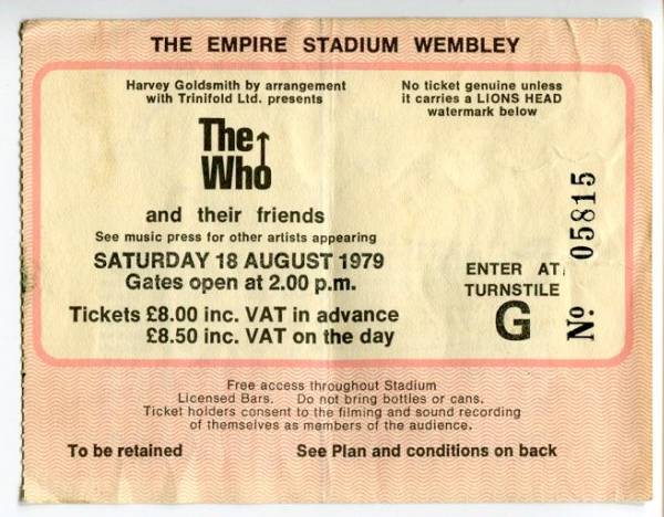 - The Who ザ・フー 1979年 EMPIRE STADIUM WEMBLEY チケット半券