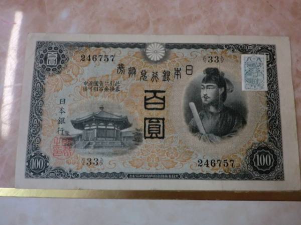 - ★ 兌換券100円 1次100円 証紙付 上美品 ★ No.128