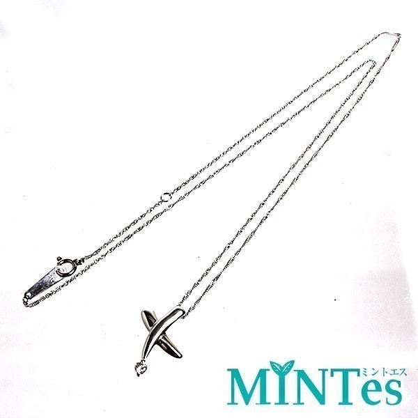 - Pt900/850 ダイヤモンド ネックレス D0.07ct プラチナ クロストップ 40cm 一粒ダイア