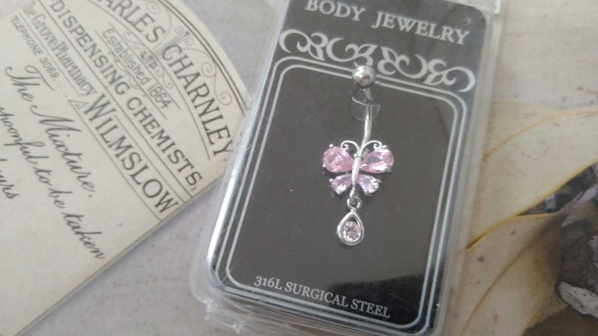 - □未開封□ボディジュエリー・ピンク蝶々&雫・ボディピアス□定価1890円□サージカルステンレス・316L□
