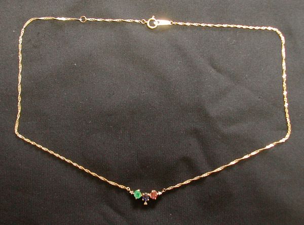 - ■未使用:カラフル三連K18ネックレス 中石3種3石+脇石3石 DmQ57