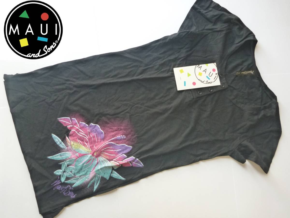 > 新品 サーフブランド MAUI and Sons マウイ&サンズ★黒 ブラック 半袖 Tシャツ ワンピース S