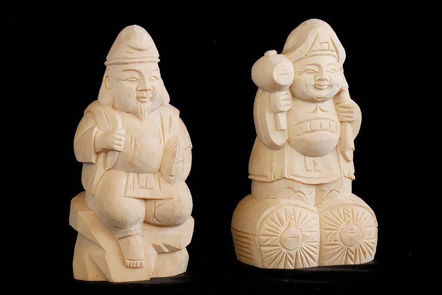 - 開運 恵比寿 大黒 中サイズ ■ 職人さん手彫 ■ 風水の置物 邪気払い お守り 風水グッズ ■ 神具 神棚