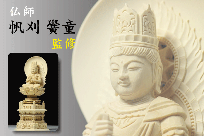 > 仏像 ■ 2寸 ■ 大日如来像 六角台座 白木 真言宗 ご本尊 ■ 仏具(高さ22.8cm×幅11.6cm×奥行き8.4cm)