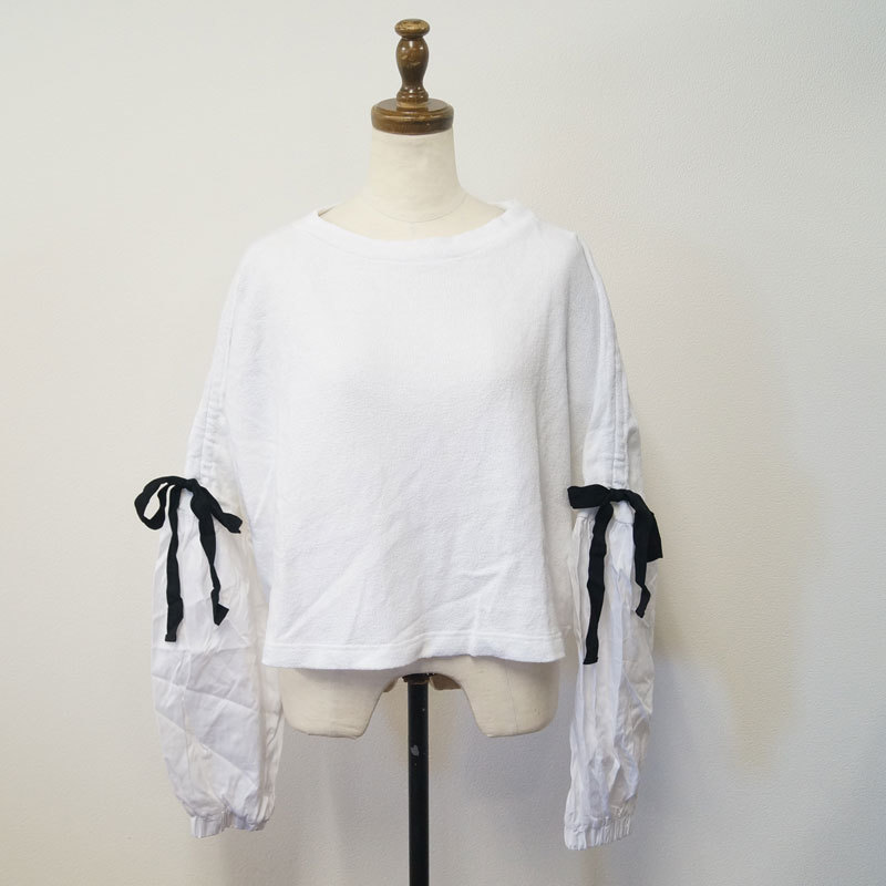 - yr58-OSKAR オスカー トップス ホワイト 長袖 リボン スウェット レディース