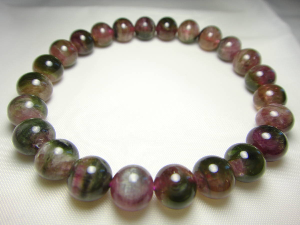 - 天然石 ウォーターメロントルマリン 約8~8.5㎜玉 ブレスレット Y088