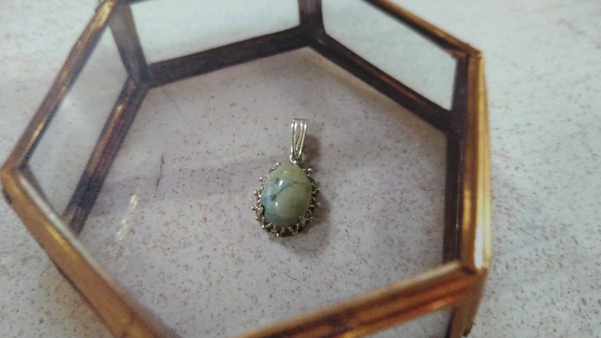 - □模様入りうす緑系ストーン×シルバーカラー・ペンダントトップ□