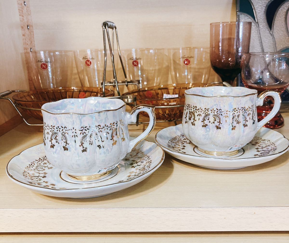 - [glory China カップ&ソーサー]グローリーチャイナ/2客セット/アンティーク食器/昭和レトロ/