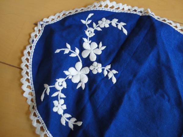 - ★60s ヴィンテージ ベルギー コットン テーブルクロス ブルー