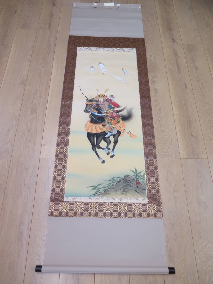 真作 掛軸 高橋如雲 「武者」 寸法:尺五立 約55×200㎝ 桐箱入り 節句のお祝い 美術工房 珠美苑