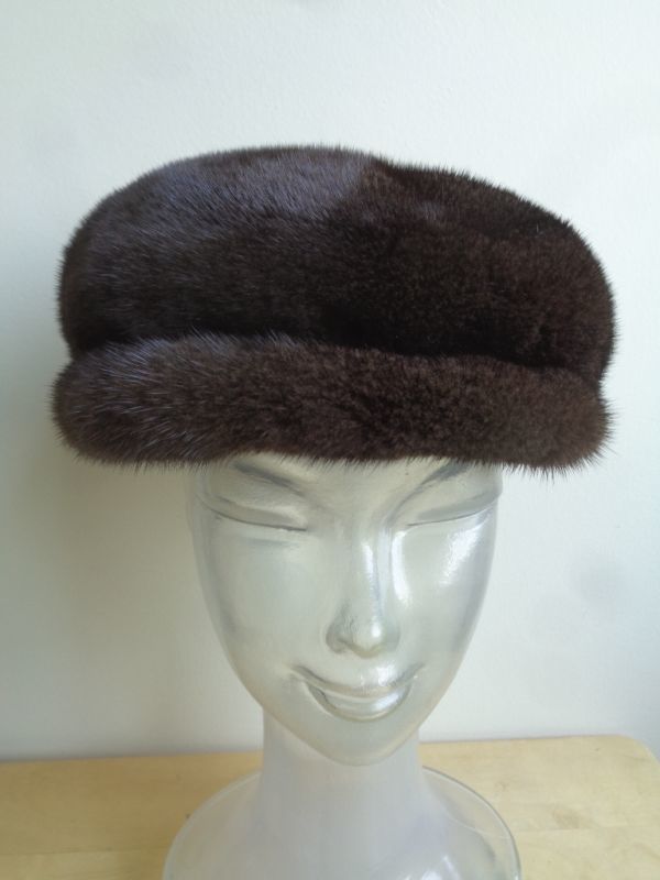 - カスタムメイド ダーク・ミンク毛皮ファー・ハット 帽子 ニュースボーイ・スタイル