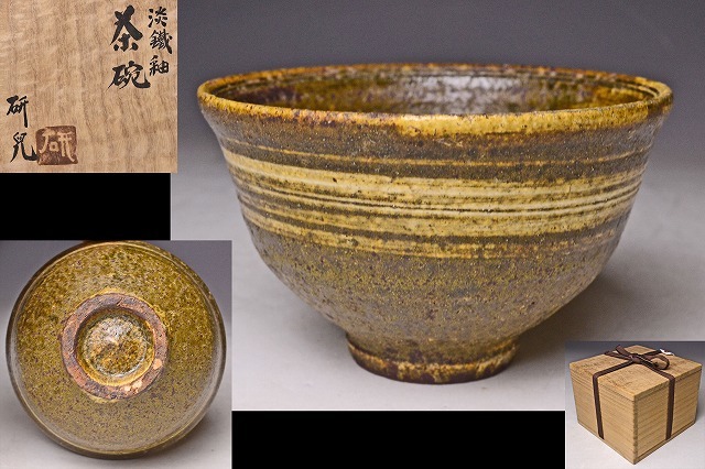 - 舩木研兒 ★ 淡鉄釉 刷毛目 茶碗 ★ 共箱 ★ 古作を思わせる侘び感のある逸品 ★ 茶道具 ★検 船木道忠 バーナードリーチ 布志名焼