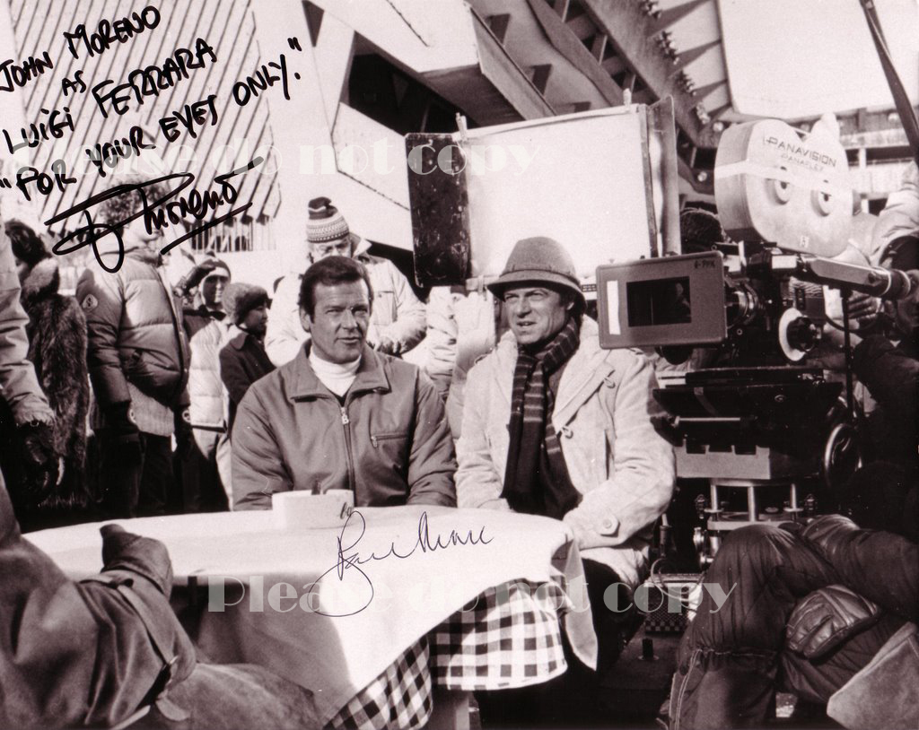 > 1981年 007 ユア・アイズ・オンリー Roger Moore ロジャー・ムーア & John Moreno ジョン・モレノ ルイージ・フェラーラ 役 サインフォト