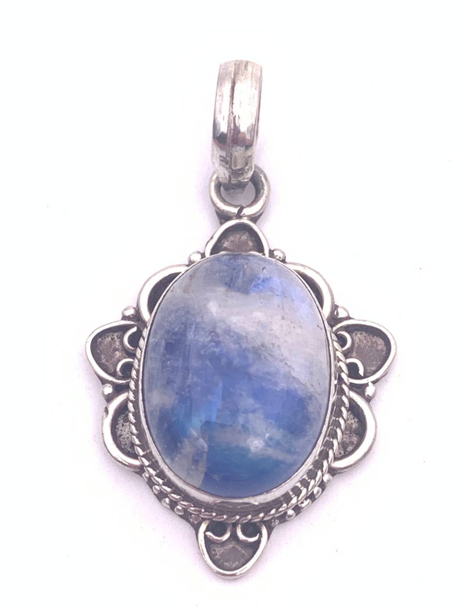- 天然石ムーンストーンアンティーク風silver925トップ-ATQ1