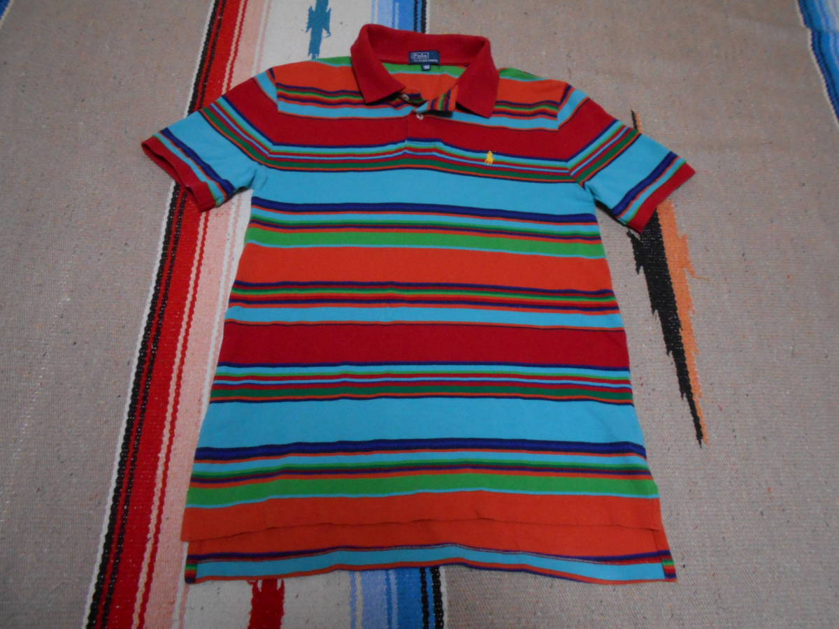 - POLO Ralph Lauren ラルフローレン コットン100% 鹿の子 ポロシャツ ターコイズ ボーダー テニス フットボール TENNIS HIPHOP SKATEBOARD