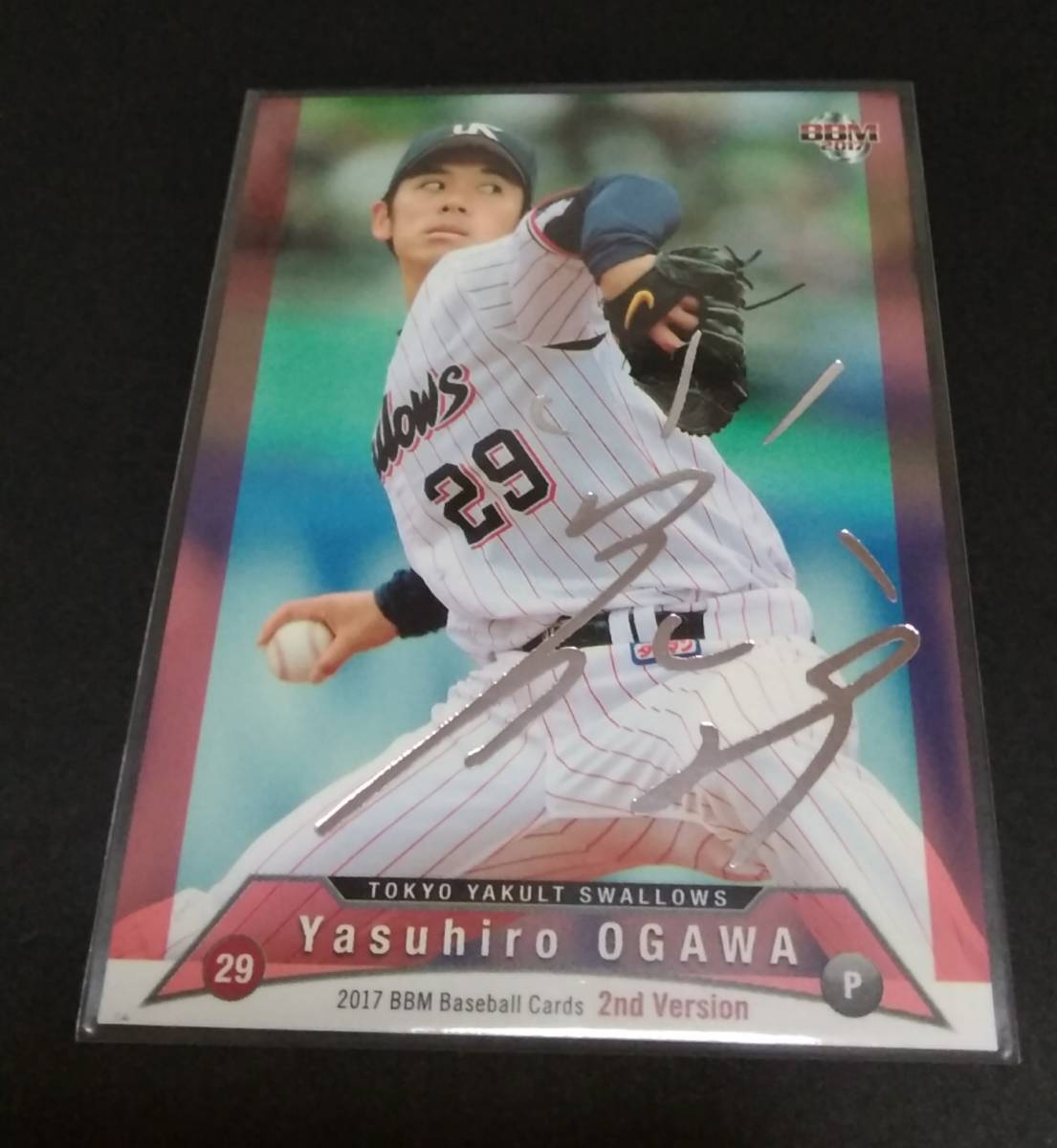 > 2017年BBM 2nd 小川泰弘(ヤクルト)銀箔サイン。No,558。