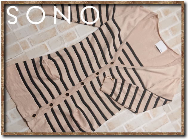 - ☆Sono ソーノ シルク混ボーダーカットカーディガン ベージュ×黒☆