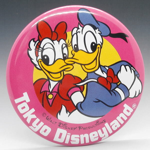 - ディズニー ドナルド&デイジー TDL缶バッジ 丸型 東京ディズニーランド 1983-1984年