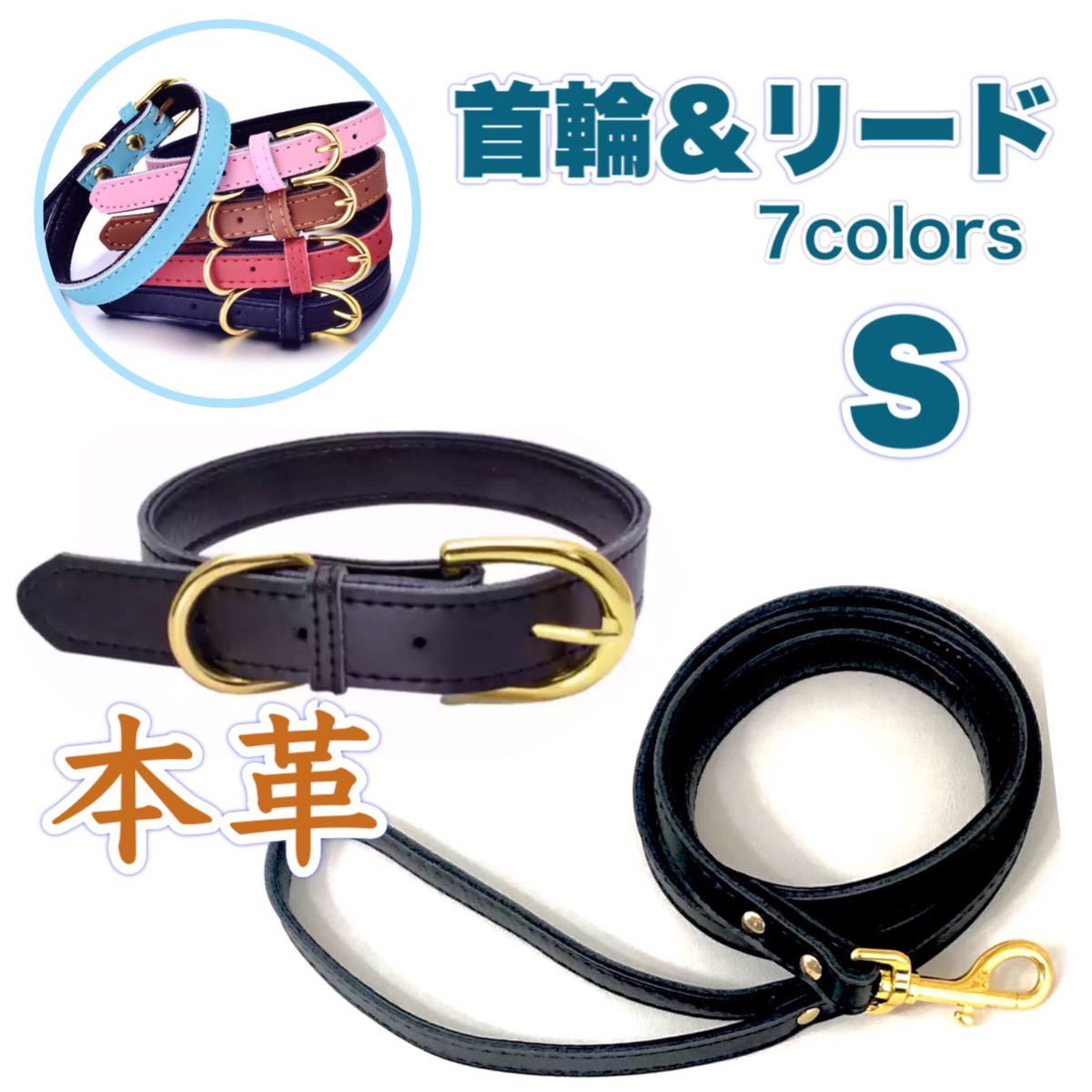 - 犬 首輪 リード セット 本革 おしゃれ 犬首輪 ゴールド 小型犬 S 高級 ブラック 黒 お出かけ