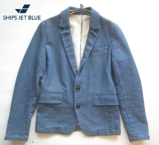> 高級!!シップス ジェットブルー SHIPS JET BLUE*インディゴ染めスウェット2つボタンジャケット S 紺 ネイビー