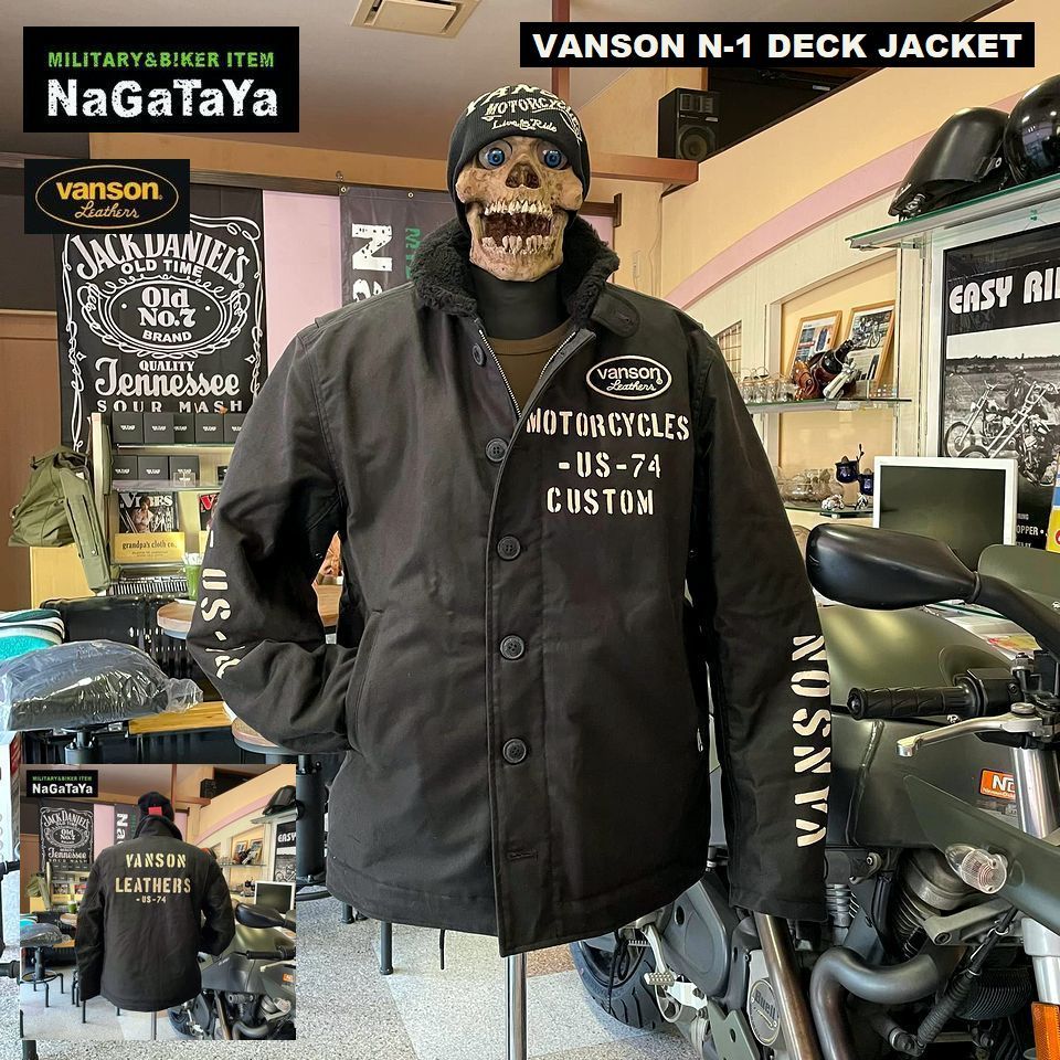 - バンソン VANSON NVJK-2105 ロゴエンブレム刺繍 N-1 デッキジャケット ブラック 黒 XXLサイズ モーターサイクルウェア ビッグサイズ