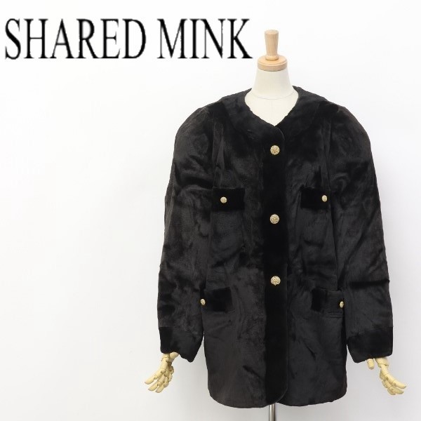 - 最高級◆シェアードミンクファー 毛皮 デザインボタン ノーカラー コート F