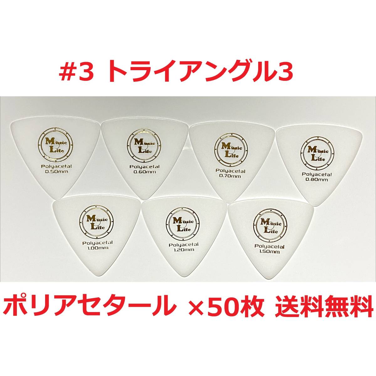 > 【0.80mm×50枚】MLピック #3 トライアングル3 Polyacetal ポリアセタール オニギリピック 三角形 【送料無料】