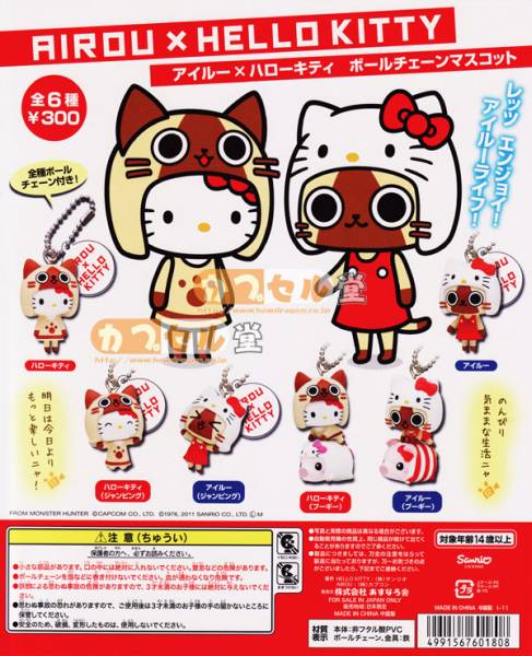 - モンハンコラボ】アイルーXハローキティ マスコット フルコンプ6種+POP【プーギー