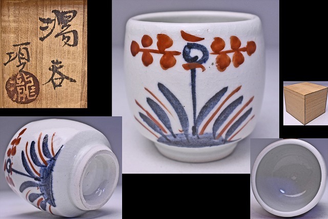 > 瀧田項一 ★ 赤絵 湯呑 ★ 共箱 ★ 師: 人間国宝 浜田庄司 / 縁 :富本憲吉 ★ 氏らしい絵付が愛らしい毎日楽しめる上作 ★