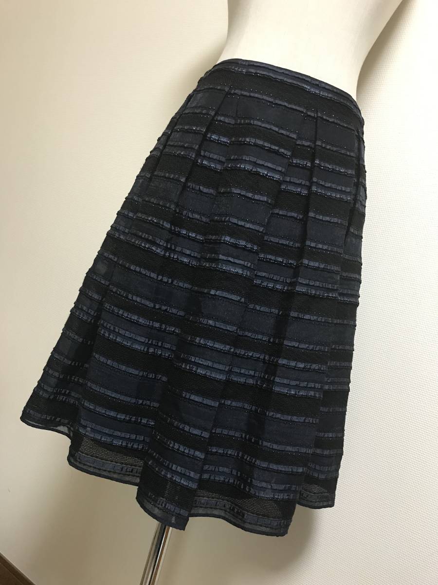 - 美品★ナチュラルビューティーラメ入フレアスカート日本製ネイビーM★8742