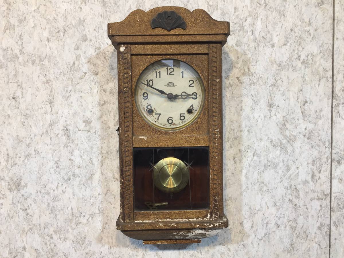 - 『 振り子時計 』 J-10 ジャンク品 TRADE MARK 馬マーク ゼンマイ式 柱時計 掛け時計 雑貨 レトロ アンティーク インテリア ★古時家★