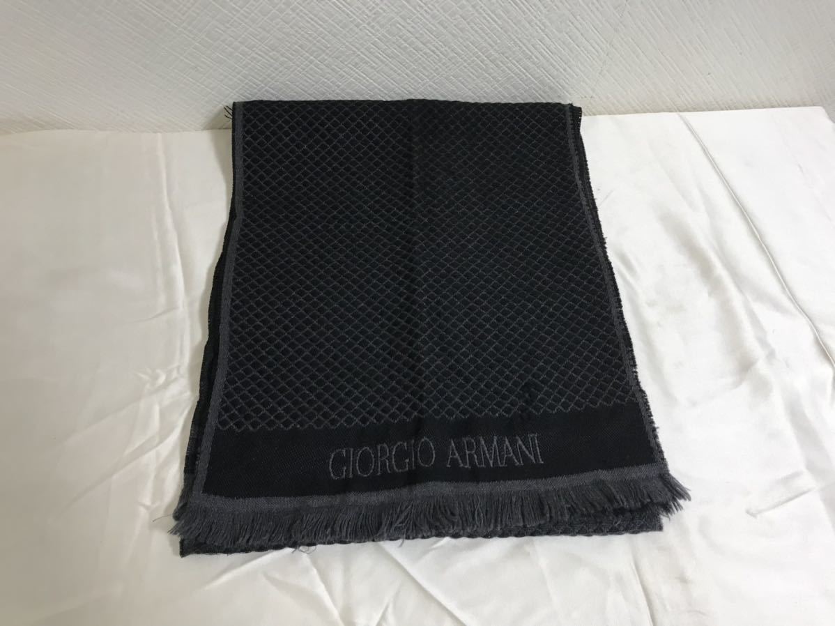 - 本物ジョルジオアルマーニGIORGIO ARMANIウールシルクマフラーストール黒ブラック柄メンズレディースビジネス