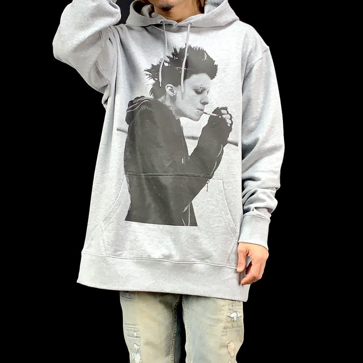 - 新品 ドラゴンタトゥーの女 ミレニアム 映画ヒロイン リスベット パンク ファッション ビッグプリント パーカー Mサイズ タイト ワイド UNI