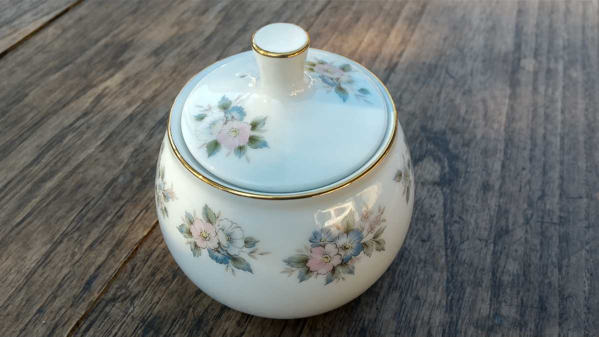 - Noritake 月桂樹RC印 シュガーポット 花柄に金彩縁 サイズ(直径9㌢高さ9㌢重さ240㌘) 年代(1956年)