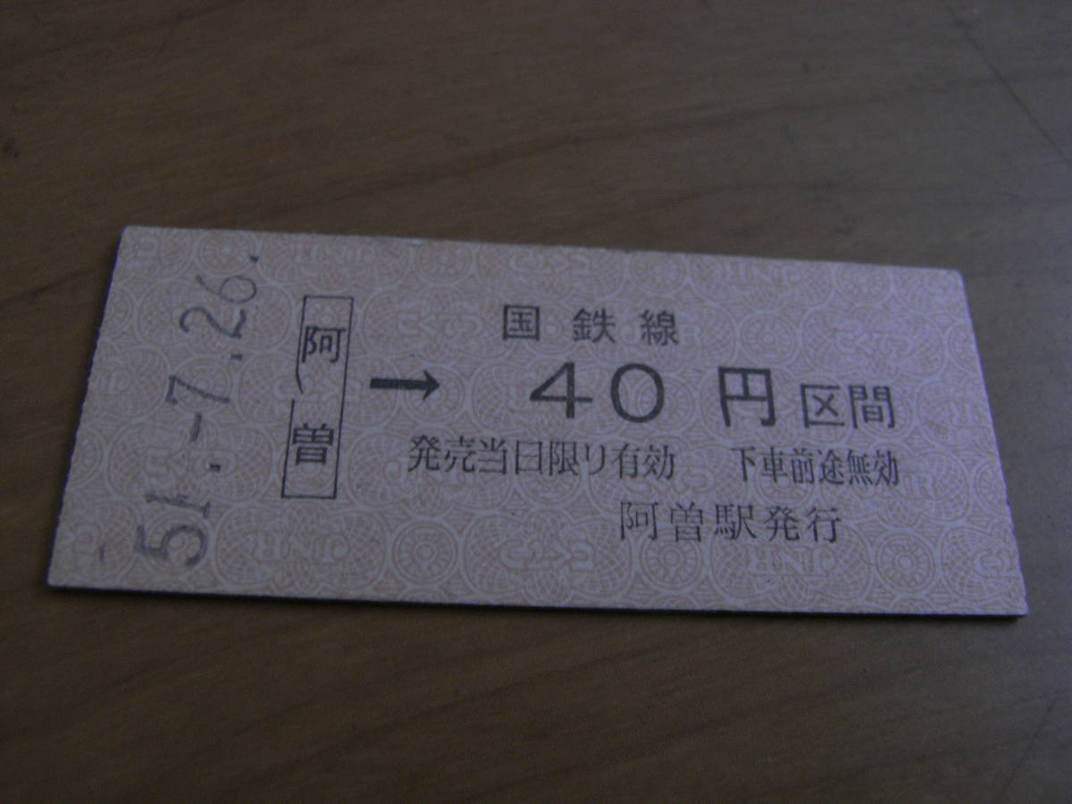 - 紀勢本線 阿曽→国鉄線40円区間 昭和51年7月26日 阿曽駅発行