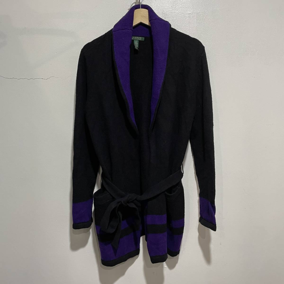 > ☆送料無料☆Ralph Lauren☆ラルフローレン☆ニットガウン☆ブラックパープル☆M☆ボーダー☆A22☆