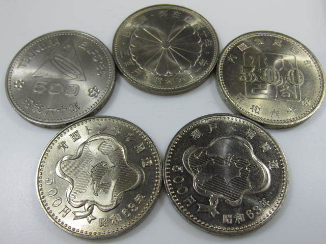 - 5柄 500円 昭和 記念硬貨 60年 61年 63年 ◆EXPO'85/青函トンネル/内閣制度/瀬戸大橋/御在位60年記念◇美品 税込 昭和レトロ
