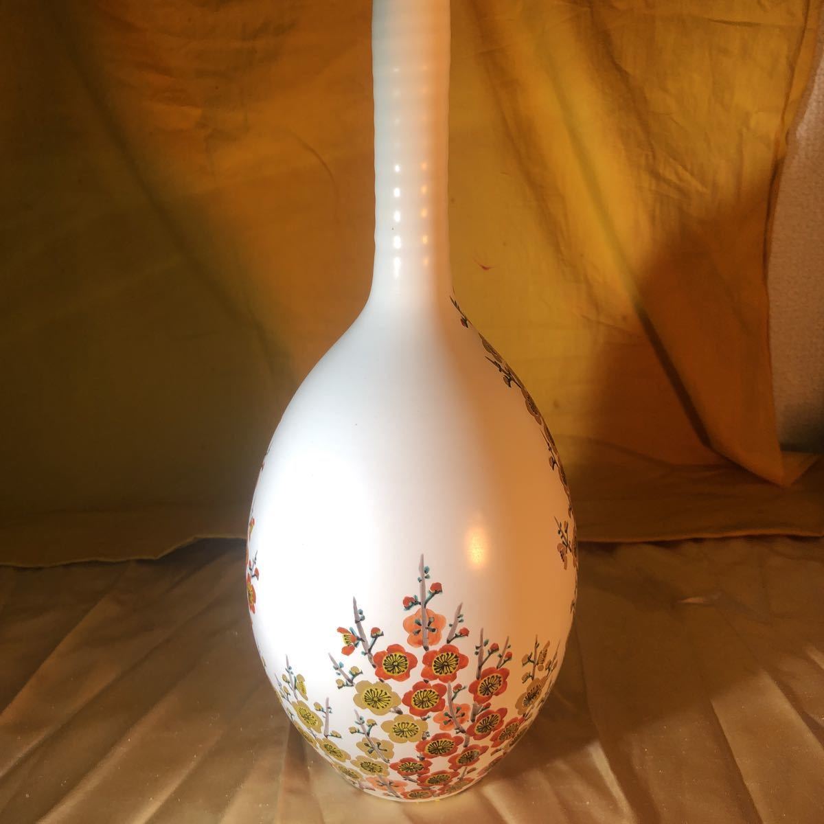 - 武腰昭一郎作 花絵梅文花瓶 花器 花生 茶道具 32cm高さ 八八八
