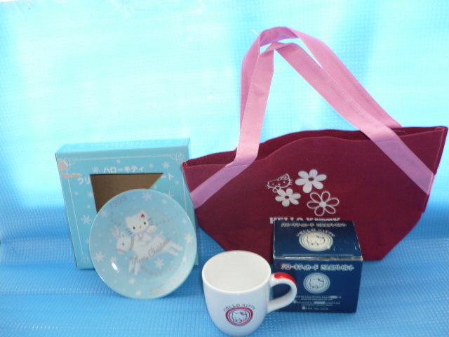> b非売品★未使用★1999年ハローキティ クリスマス メモリアルプレートとカード入会記念マグカップ他3点