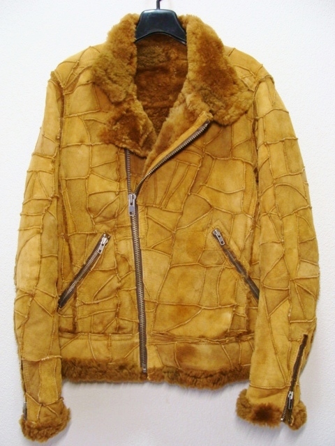 > 291295=HOMME PAZZO パッゾ ◇ 羊 皮 革 ムートン ファー パッチワーク レザー セミ ダブル ライダース ジャケット ブルゾン