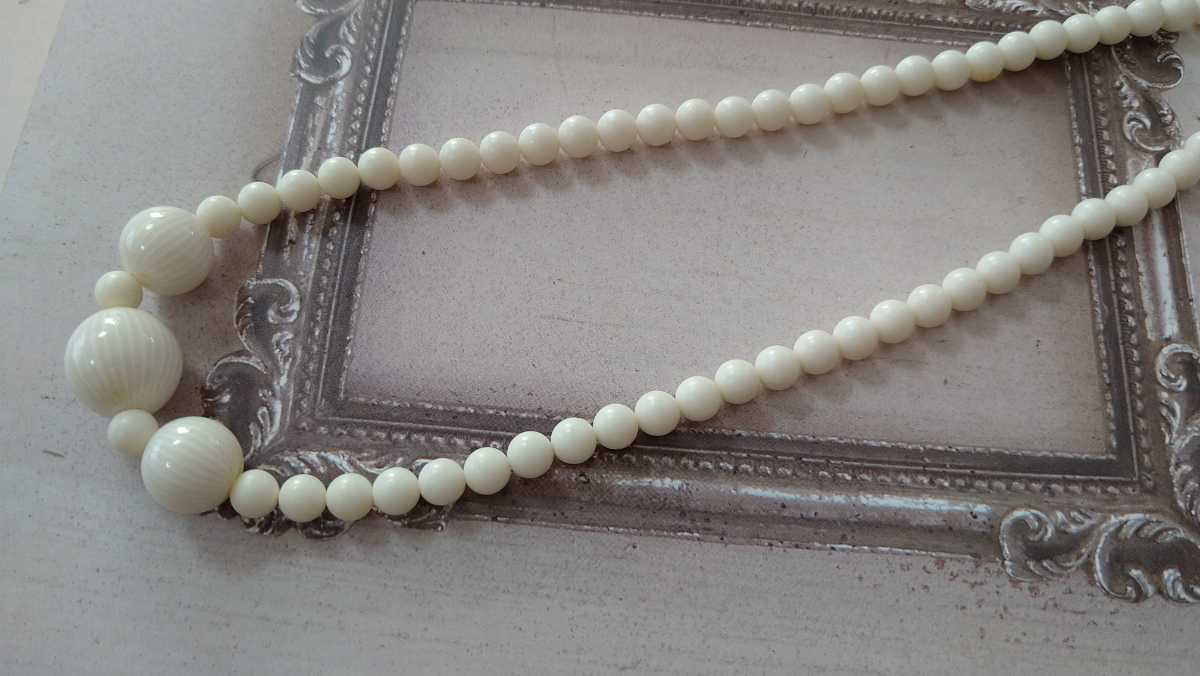- □訳あり□ホワイトベージュビーズ・ネックレス□